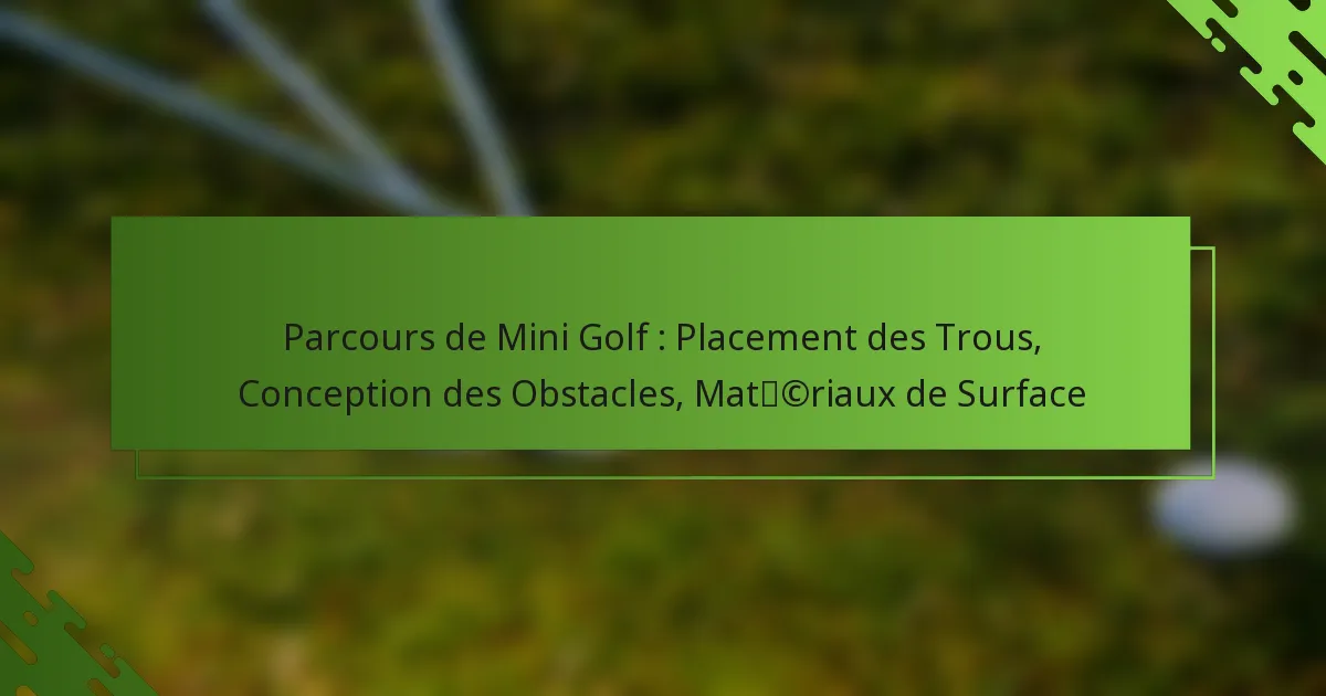 Les matériaux de surface adaptés aux parcours de mini-golf incluent le gazon synthétique, le béton et le gazon naturel, chacun offrant des avantages et des défis uniques. Le choix du matériau impacte la durabilité, l’entretien et l’attrait esthétique global, rendant essentiel de sélectionner la bonne option en fonction des exigences spécifiques du parcours.