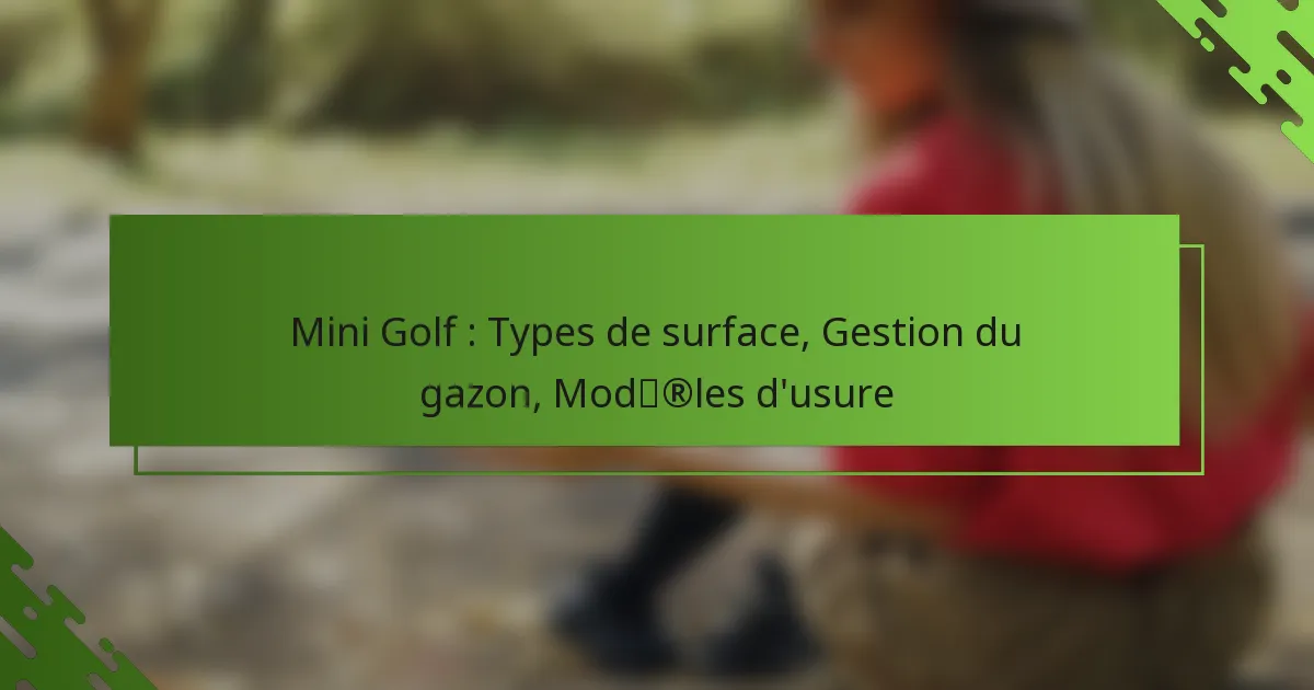 Les parcours de mini-golf utilisent différents types de surfaces, tels que le gazon artificiel, le gazon naturel et le béton, chacun influençant le jeu et l’entretien de manière différente. Une gestion appropriée du gazon est essentielle pour maintenir ces surfaces, impliquant des pratiques telles que la tonte, l’arrosage et le contrôle des nuisibles pour garantir une jouabilité optimale. De plus, reconnaître les motifs d’usure courants, tels que le gazon clairsemé et les surfaces inégales, aide à un entretien efficace et prolonge la durée de vie du parcours.